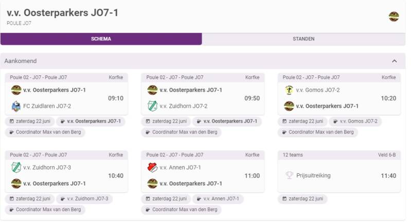 Klaverbad jeugdtoernooi Bedum speelschema's JO7 en JO10