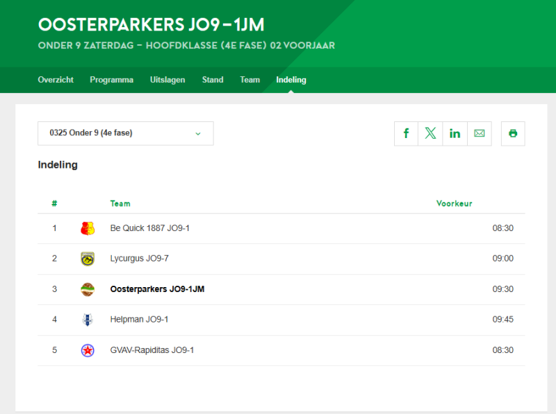 Oosterparkers JO9-1 neemt in de laatste fase van dit seizoen deel aan de Hoofdklasse. Deze talentvolle lichting is, op basis van uitstekende resultaten in de voorgaande fase, beloond met een plek op het hoogste niveau binnen hun leeftijdscategorie. Met ploegen als GVAV, Be Quick, Lycurgus en Helpman staan er prachtige wedstrijden op het programma.